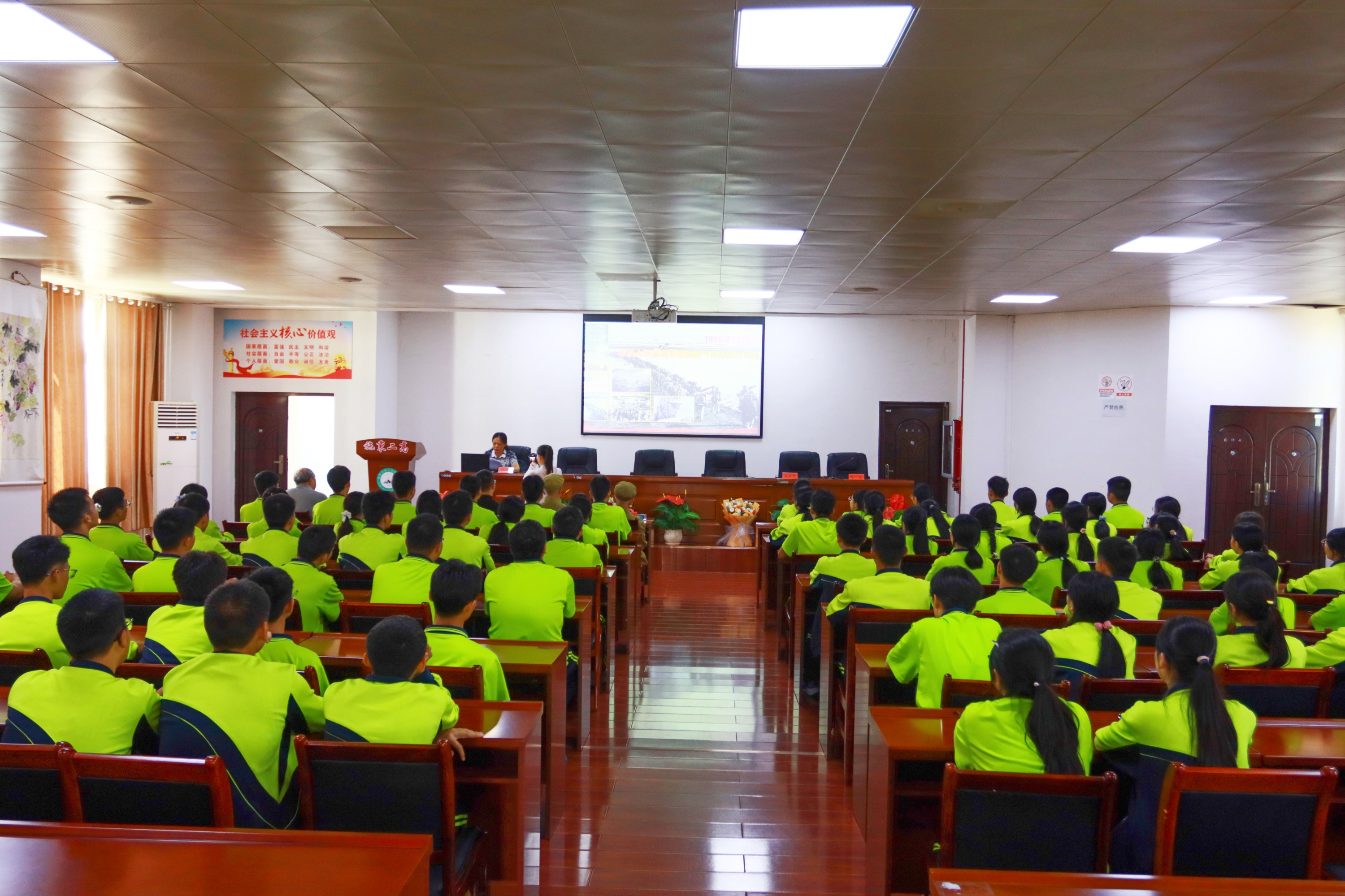 9月16日下午,施秉县退役军人事务局、教育局联合施秉县第二高级中学,在该校会议室举办“铭记历史·致敬英雄”抗美援朝入朝作战75周年主题宣讲活动。百余名师生代表在陈正国、何武广两名抗美援朝老战士的回忆与寄语中,重温峥嵘岁月,传承英雄精神。