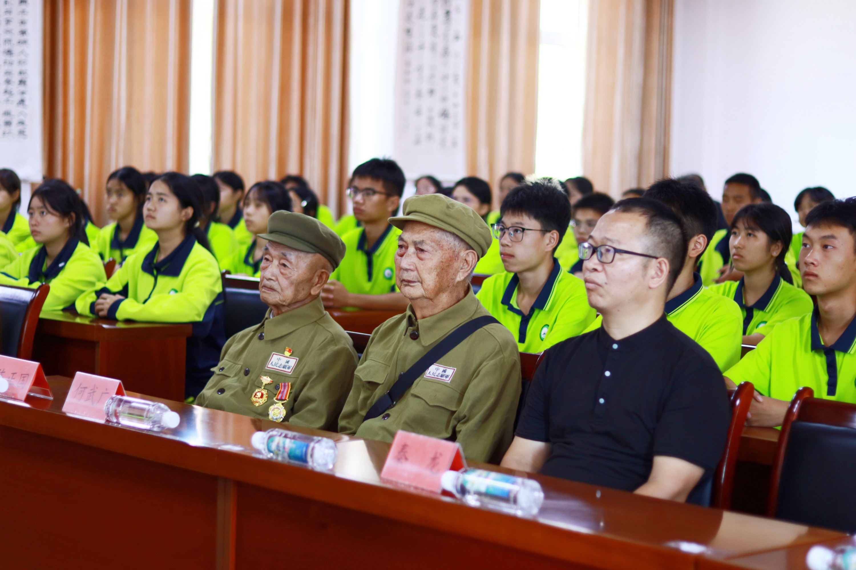 志愿军老战士及师生代表认真听宣讲