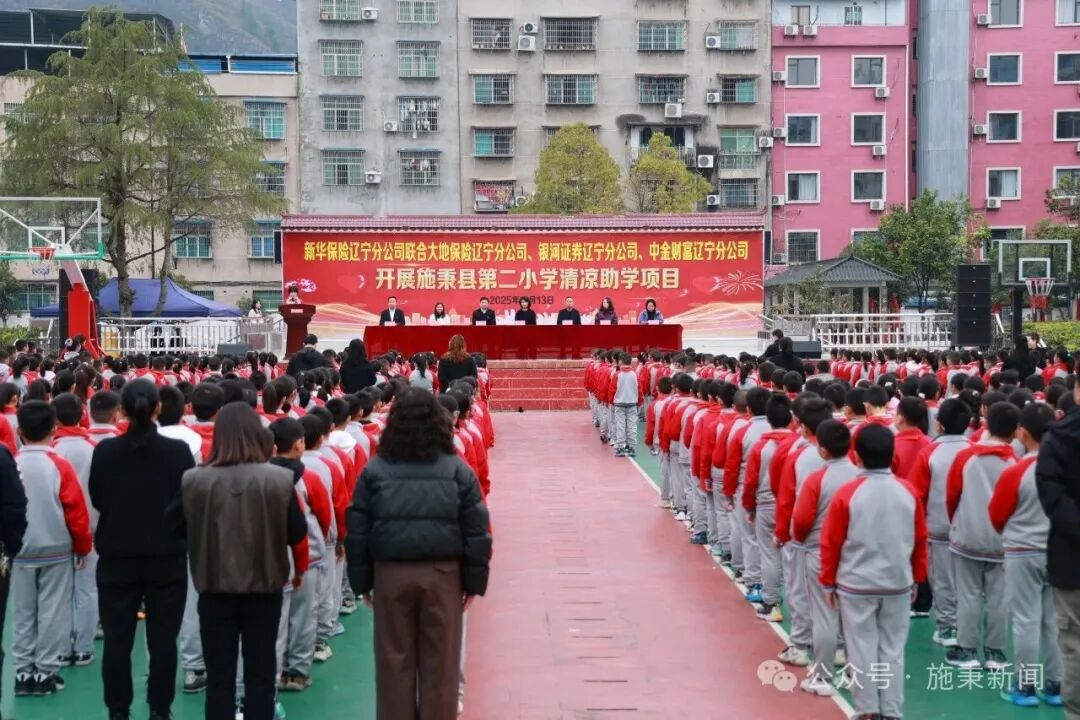 在施秉县第二小学,新华保险辽宁分公司携手大地保险辽宁分公司、银河证券辽宁分公司、中金财富辽宁分公司四家企业共同启动“清凉助学项目”为该校捐赠了总价值11万余元的空调25台,以实打实的爱心举措,为师生们构筑起舒适的教与学空间,让师生们得以在适宜的环境中安心授课、潜心求学。