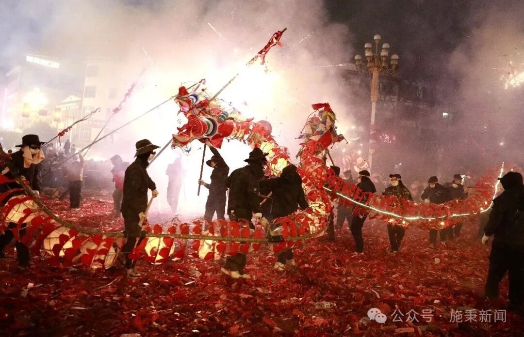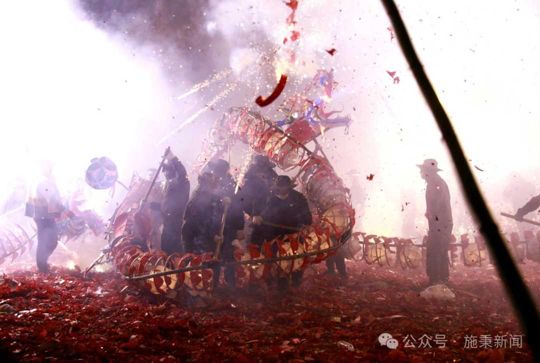 在施秉传统习俗中,“炸龙”越狠,来年日子越红火。鞭炮炸走的是一年晦气与不顺,留下的是满满福气与兴旺。飞舞的火光映红了每一张兴奋的脸庞,震耳的爆竹声,喊出了施秉人骨子里的豪迈,也道出了施秉人对新一年的无限憧憬。这独有的民俗,是六百年历史的活态延续,更是山水与非遗的深情相拥。