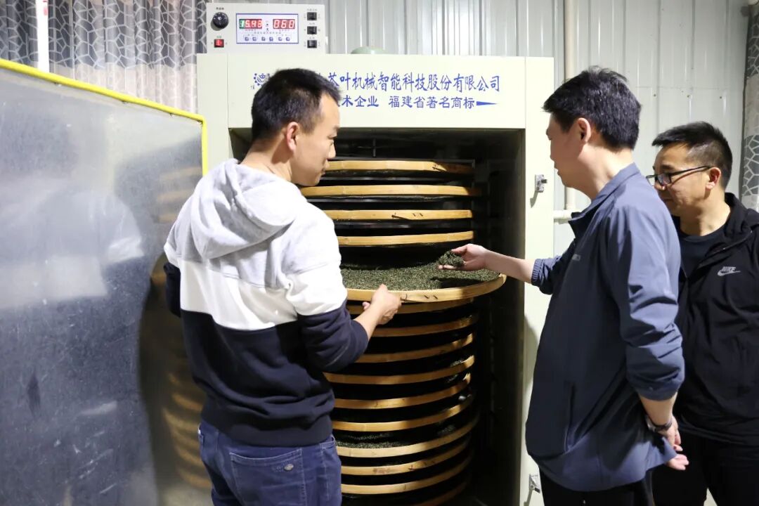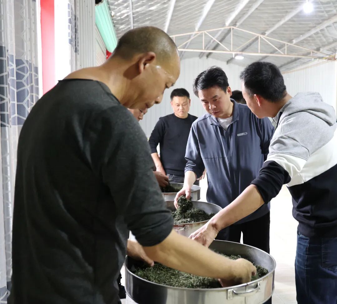 在王家坪村茶叶加工厂,石家彬来到加工车间,察看茶叶杀青、揉捻、烘焙等制作环节,与技术工人交流茶叶加工工艺的要点与难点,与加工厂负责人了解茶叶的品种结构、原材料供应渠道,以及产品的市场销售情况。石家彬指出,茶叶产业要注重品牌建设,深挖王家坪村茶叶的文化内涵,提升产品附加值,拓宽销售渠道,进一步打开市场。