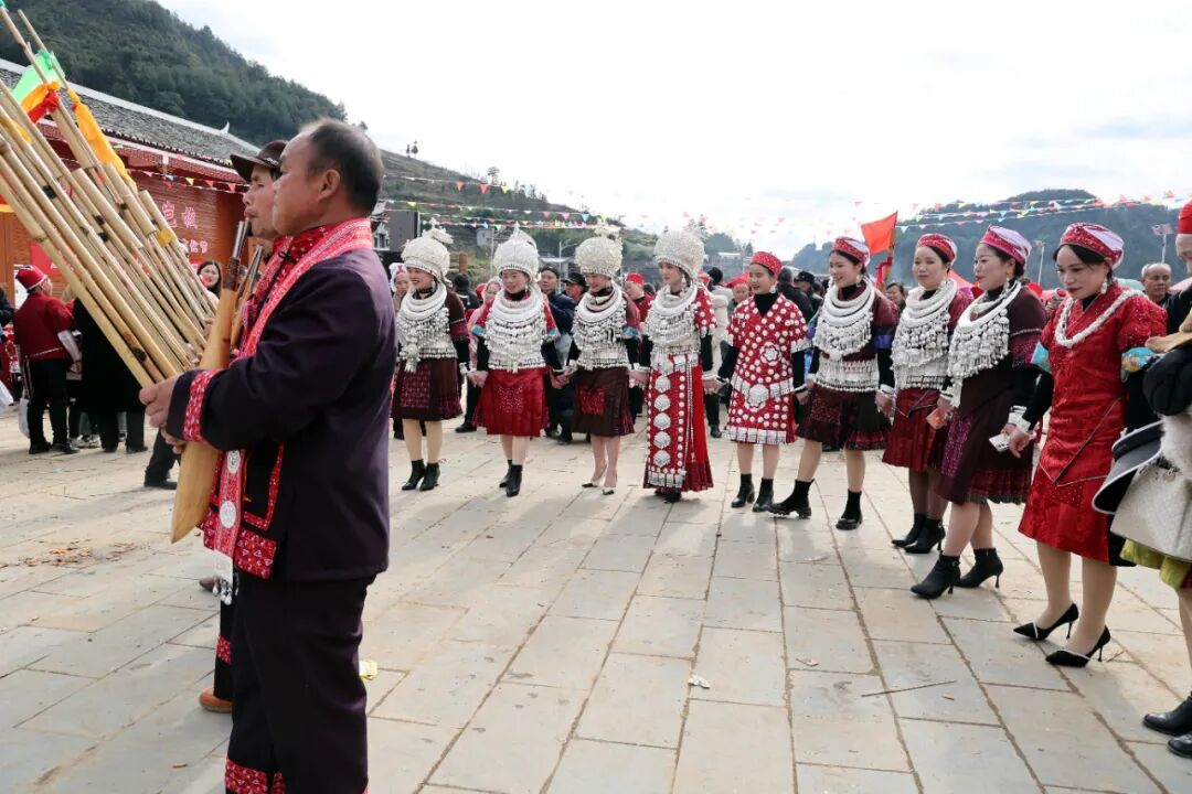 当日,芦笙场上热闹非凡,十来支来自各地的男女芦笙队有序登场,奏响欢快旋律。苗族姑娘们身着绚丽盛装,围绕芦笙队翩翩起舞,用优美舞姿为节日增添喜庆氛围,现场一片欢腾。