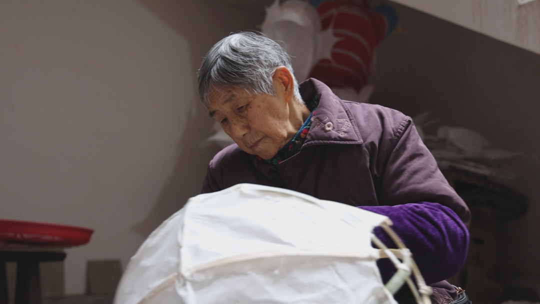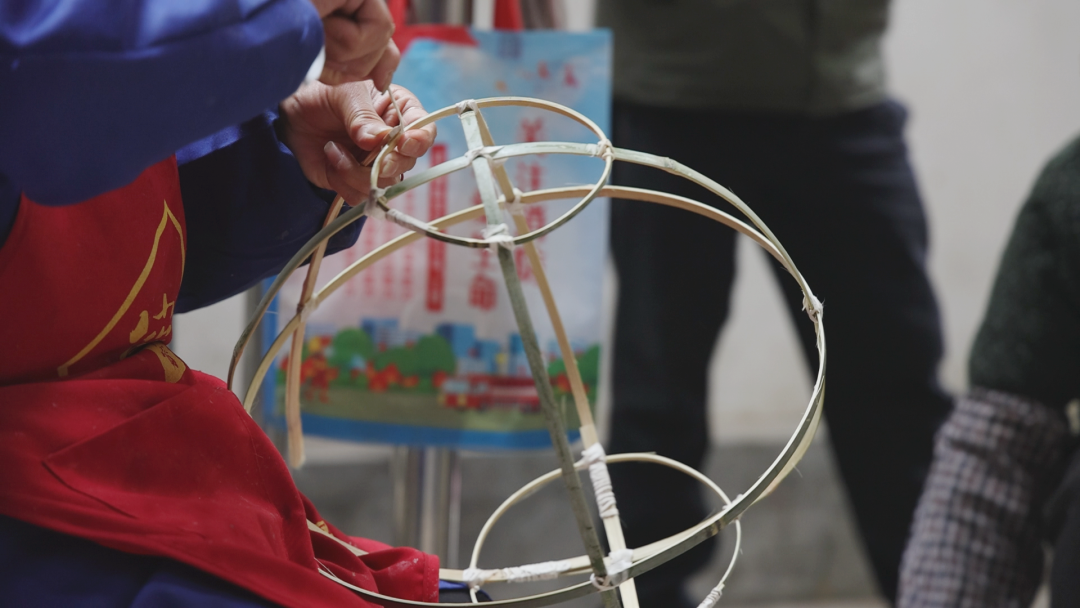 在城关镇城中社区一群众家中,几位大妈和大叔正在制作亮龙的“龙宝”“龙蛋”和“鱼虾”,大家分工协作,将竹篾用纸捻子进行捆绑固定,再用封灯纸进行裱糊,待干透后用颜料上色就可完成。刘通芝与其他几位大妈一样,制作龙灯已经有10多年,别看她们只是负责制作工序最简单的一部分,但都需要慢工细活,才能决定成品的美观性。