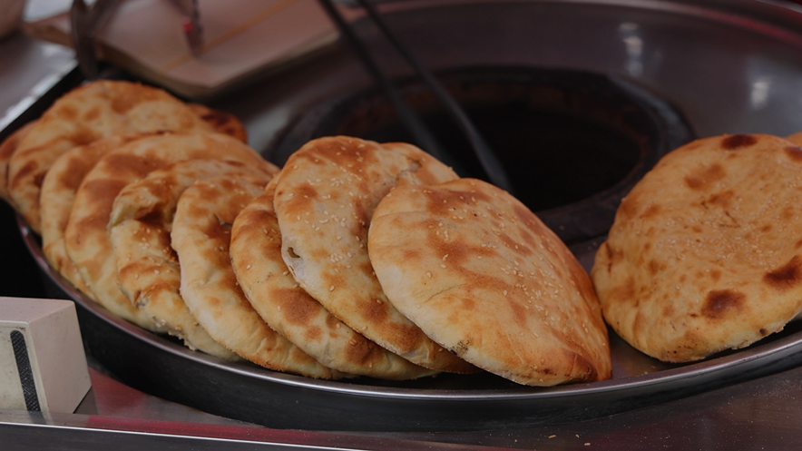 锅盔经过师傅们的巧手揉捏放入烤桶,烤至酥脆金黄,它的外皮酥脆入口即化,内里又饱满有嚼劲,让人一尝难忘