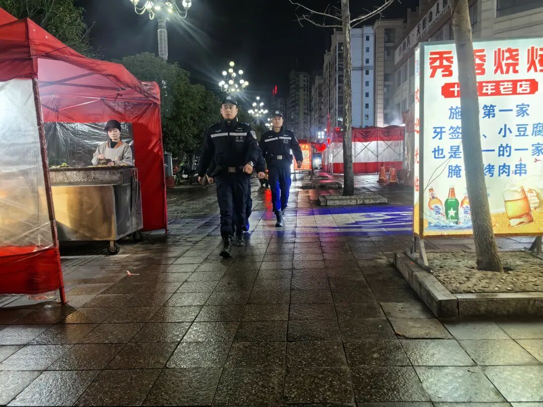 为提升群众安全感、幸福感,施秉县公安局特巡警大队采取“车巡+步巡”“动态巡逻+定点值守”相结合的方式,将警力最大限度投向街面,重点加强宵夜摊、步行街等人员密集场所的巡逻防控,不断延伸“巡防线”、扩大“守护圈”,着力提高街面见警率、盘查率、管事率和快速处置能力,让群众随时随地见警车、见警察、见警灯,用“警察蓝”守护“平安年”。