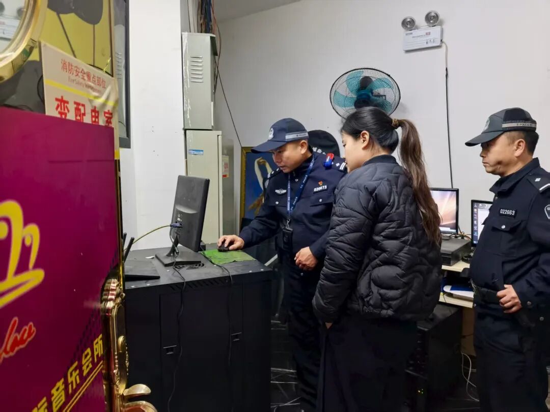 检查中,民警针对宾馆、KTV、网吧、棋牌室等公共娱乐场所,紧扣消防安全、治安管理、内部安全防范等重点,从“人防、物防、技防”三方面开展全面细致的检查。对检查发现的薄弱环节和安全隐患,民警当场提出整改意见,责令相关负责人限期整改到位,并督促各场所严格落实安全主体责任,切实消除治安死角和管理盲区。