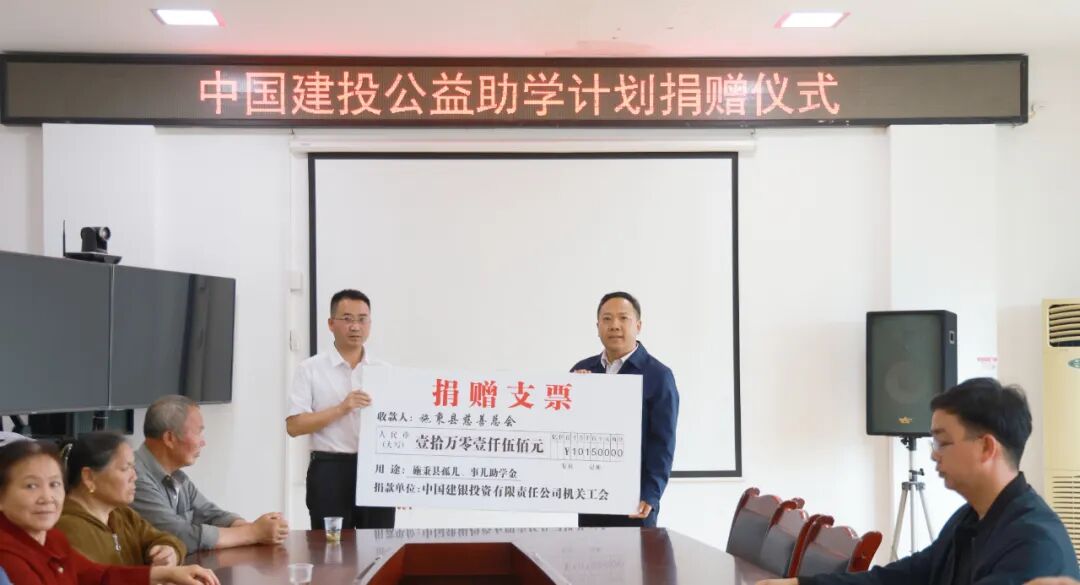 4月24日,中国建投“公益助学计划”捐赠仪式在施秉县民政局会议室举行。中国建银投资有限责任公司(简称中国建投)向施秉县115名孤儿及事实无人抚养儿童捐赠助学资金10.15万元。据了解,中国建投“公益助学计划”已连续三年对施秉县进行捐赠,捐赠金额累计26万余元,惠及全县困难儿童314人次。